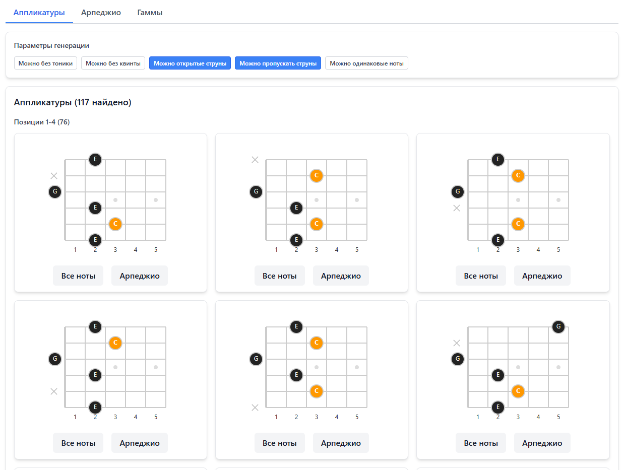 Поиск аккордов, гамм и аппликатур арпеджио #