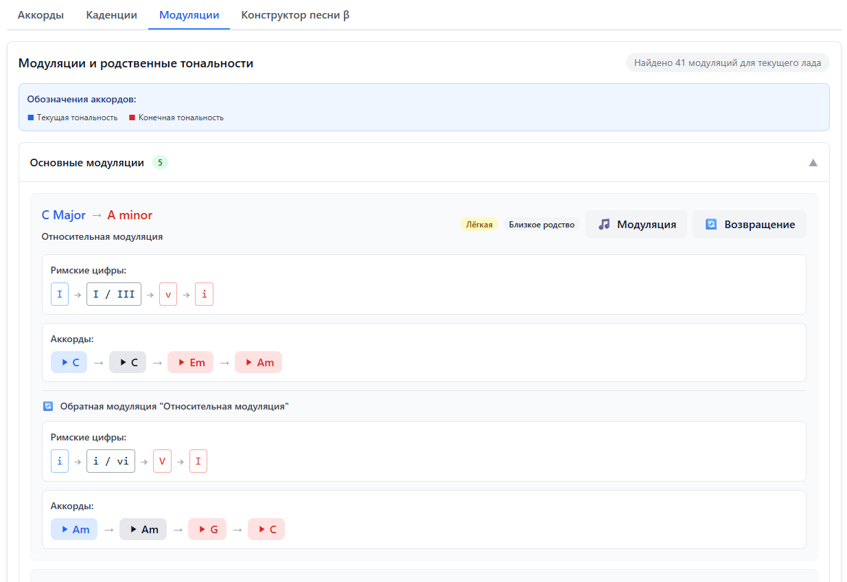 Часто в музыке используются модуляции - переходы из одной тональности в другую. В этом разделе есть библиотека популярных модуляций с примерами и объяснениями.